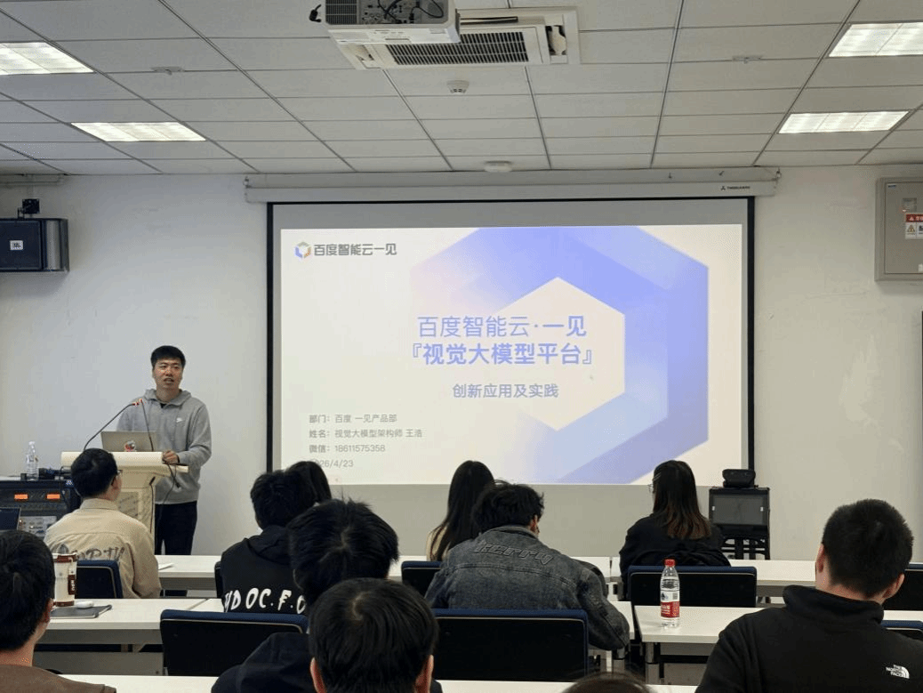 培训伊始,百度一见视觉大模型产品资深架构师王浩作题为《百度一见视觉大模型创新应用及实践》的专题讲座,结合产业实际案例,系统阐释视觉大模型的创新应用路径,有效拓宽参训师生在智能感知、机器人应用等前沿技术领域的认知视野。