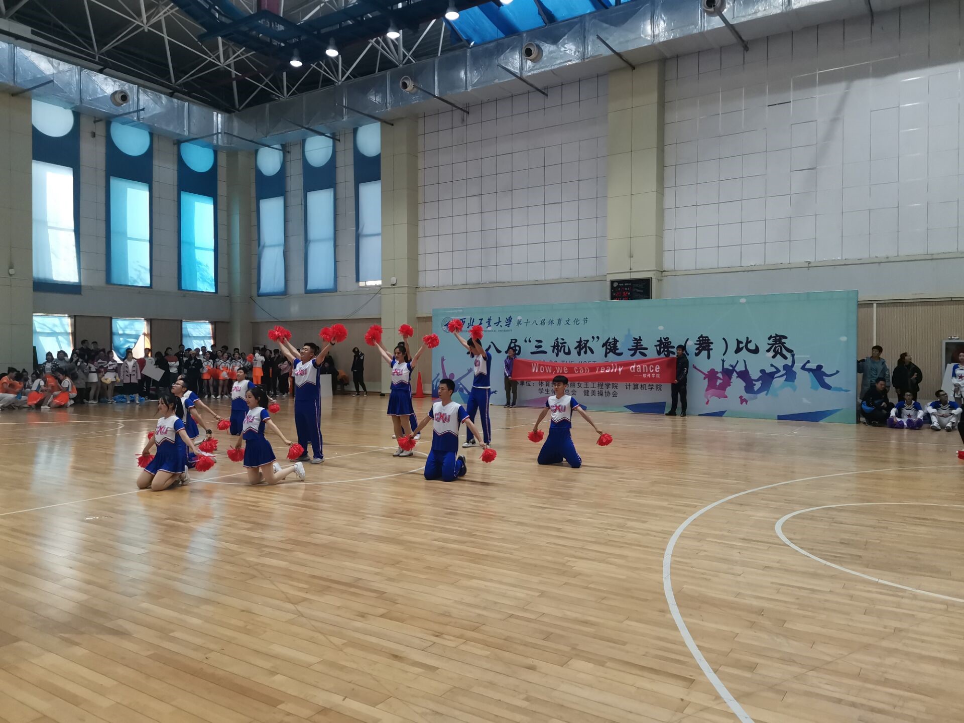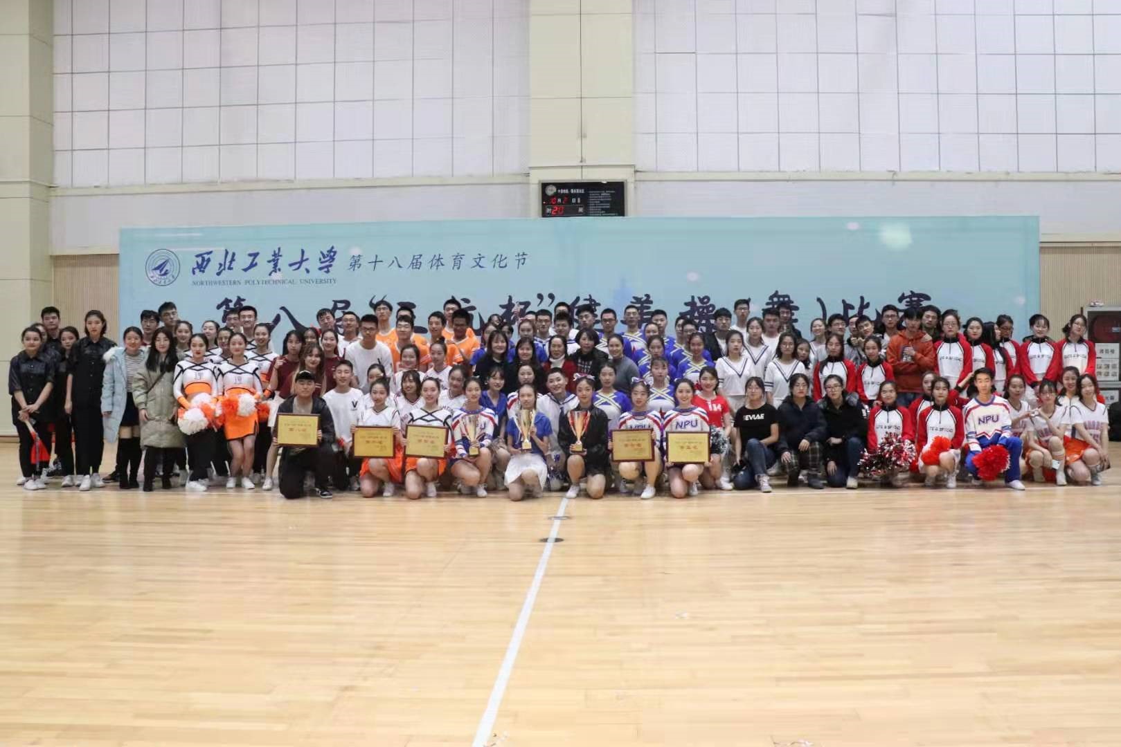 的啦啦操队员纷纷拿出最好的精神面貌投入到此次大赛中去。