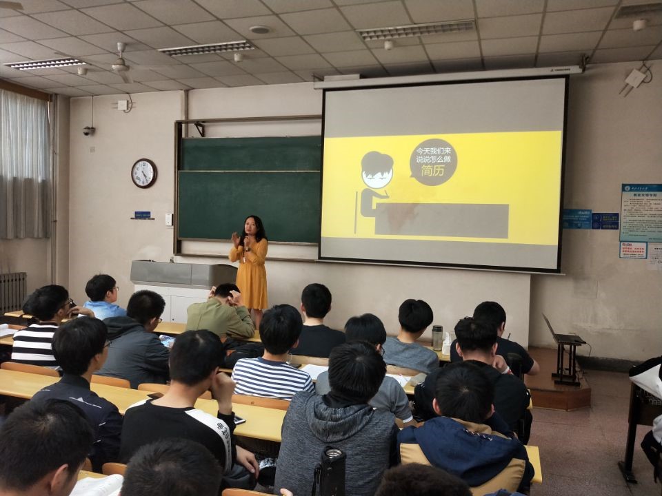 简历制作讲座在研究生西馆XB101举行。本次活动邀请神州数码集团股份有限公司资深HR马蕊老师给同学们带来简历制作讲座,av解说