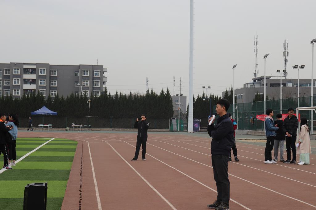 辅导员樊超老师分别致辞,樊超老师特别引用了清华大学提出的“每天运动一小时,健康工作五十年”和教育部部长补充“幸福生活一辈子”口号,向大家强调了体育锻炼的重要性,只有拥有一个好的身体才能保证正常的工作和学习。辅导员老师致辞环节后,由运动员代表与裁判代表宣誓,向大家倡议友谊第一比赛第二以及公平公正的体育精神。