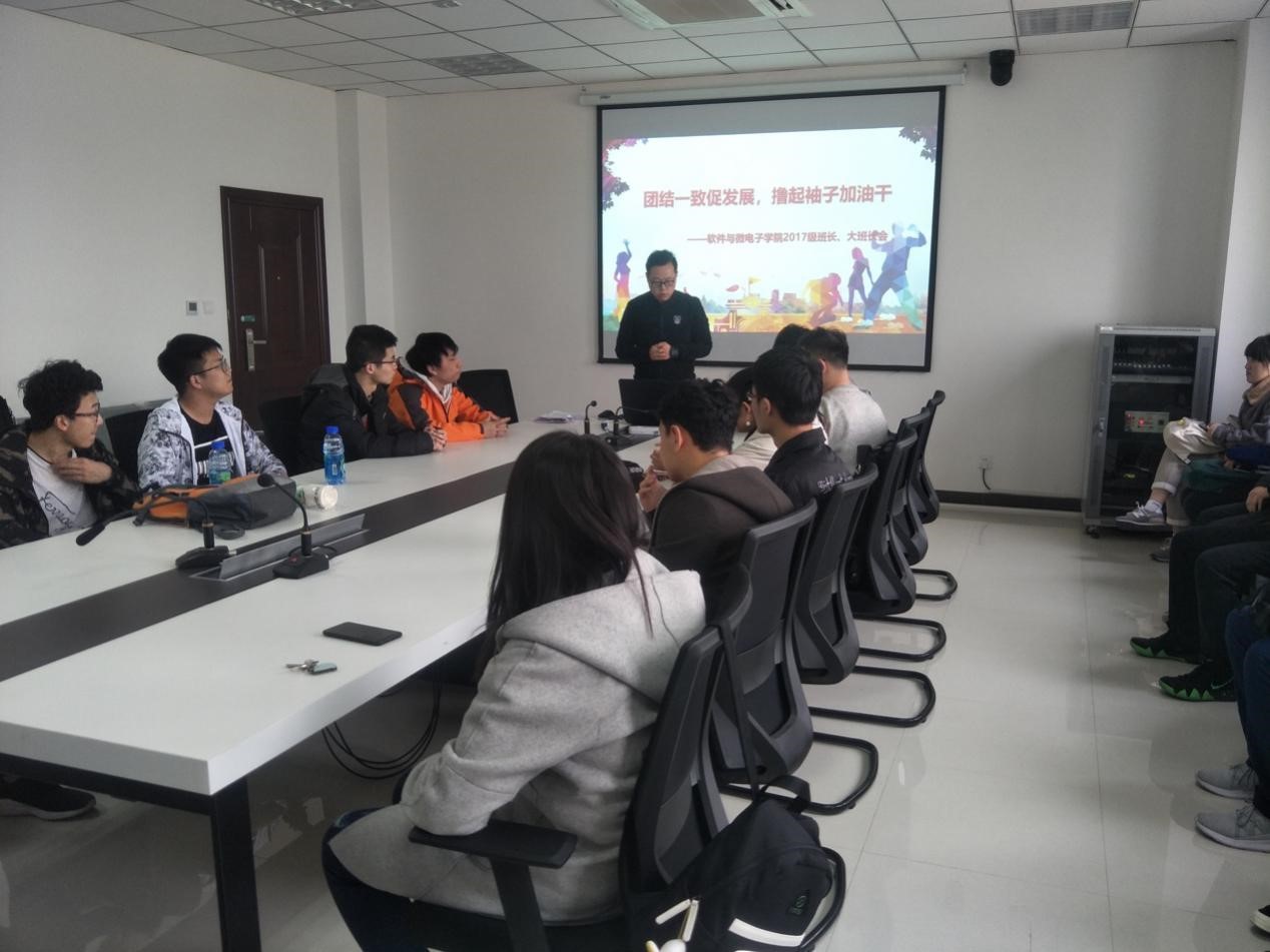 于2019年3月6日下午在启翔楼303召开题为“团结一致促发展,撸起袖子加油干”的2017级本科班长工作总结汇报会。答辩会由av解说