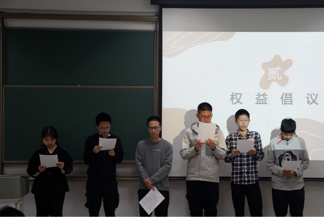 学生权益倡议书》。倡导大家在生活中要积极维护自身权益,多途径维护自身权益。