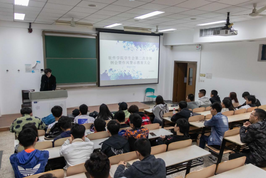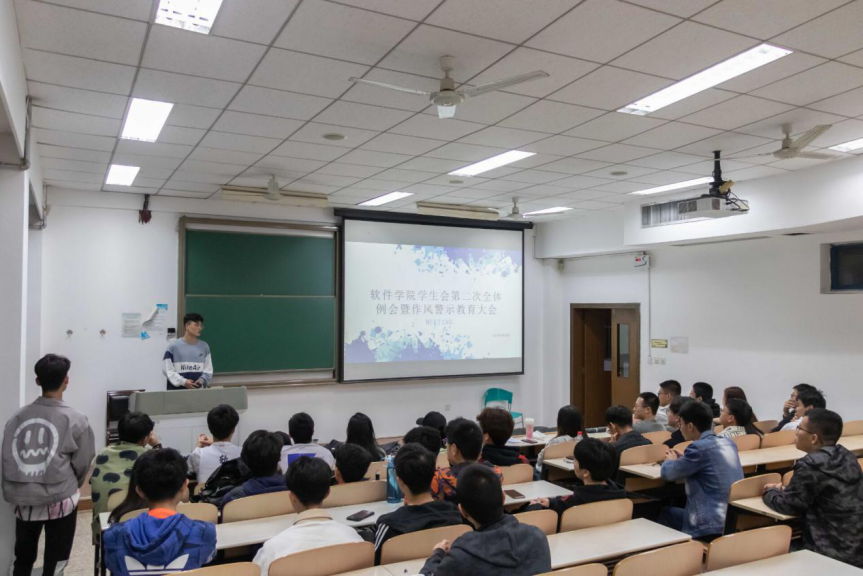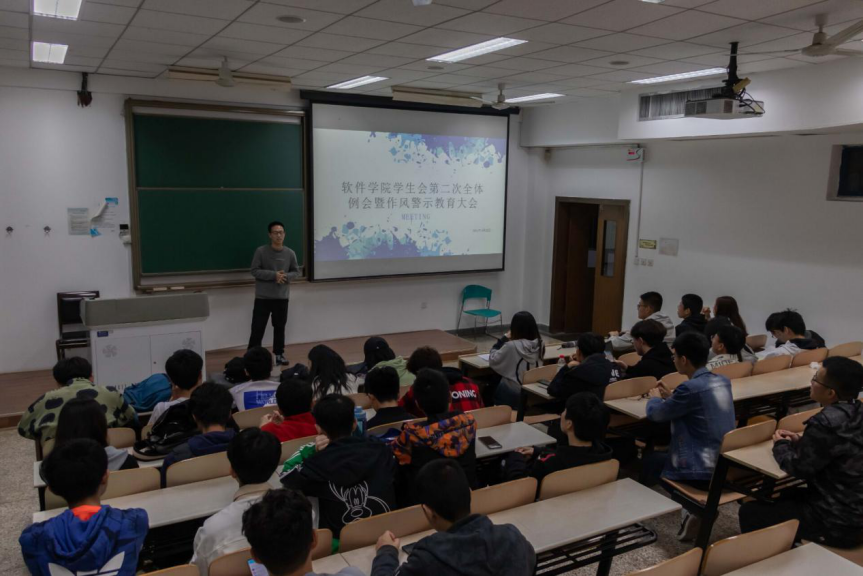 学生会第二次全体例会暨作风警示教育大会在教西C108召开,会议由主席团成员石一鹏主持,av解说