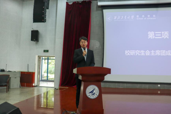 团委书记王丽致辞闭幕词。她鼓励新时代的西工大软件学子,要坚定不移听党话、跟党走,以实现中华民族伟大复兴为己任,不辜负党的期望、人民期待,不辜负伟大的时代!