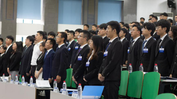 大会在庄严的国歌中开幕。校学生会主席团成员王力泉,校研究生会主席团成员李政,兄弟av解说