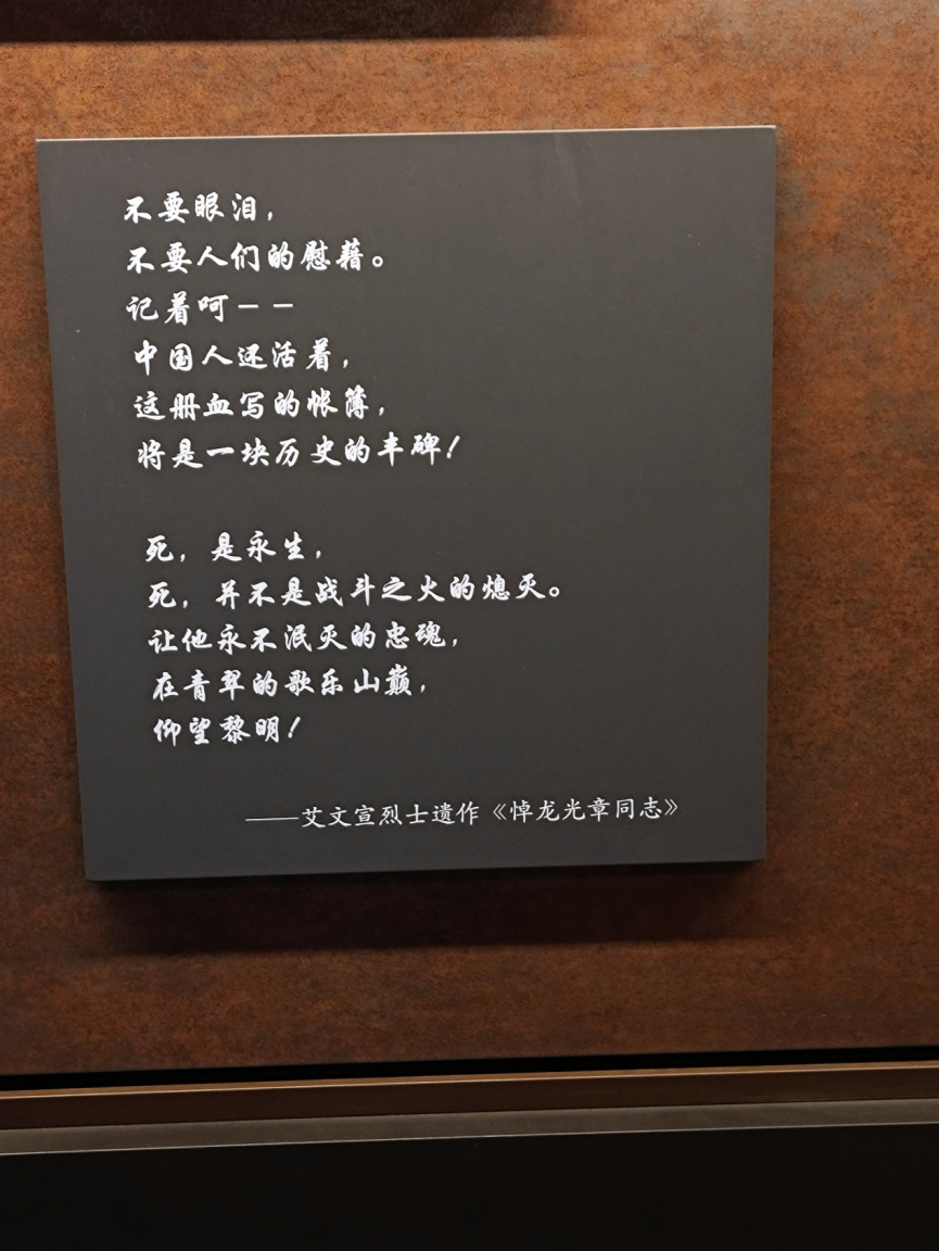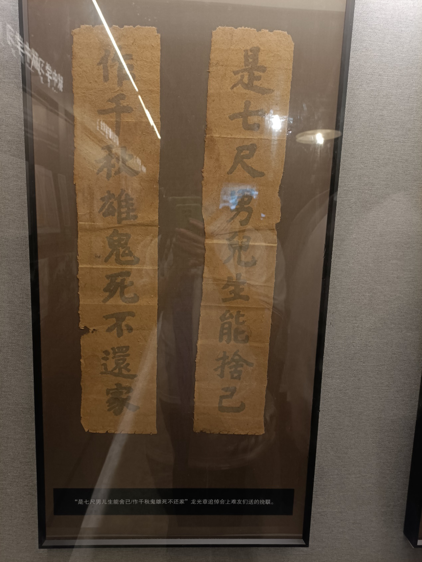 (在追悼会上同志们为龙光章写下挽联:“是七尺男儿生能舍己,作千秋鬼雄死不还家”)