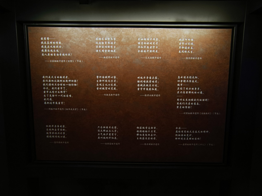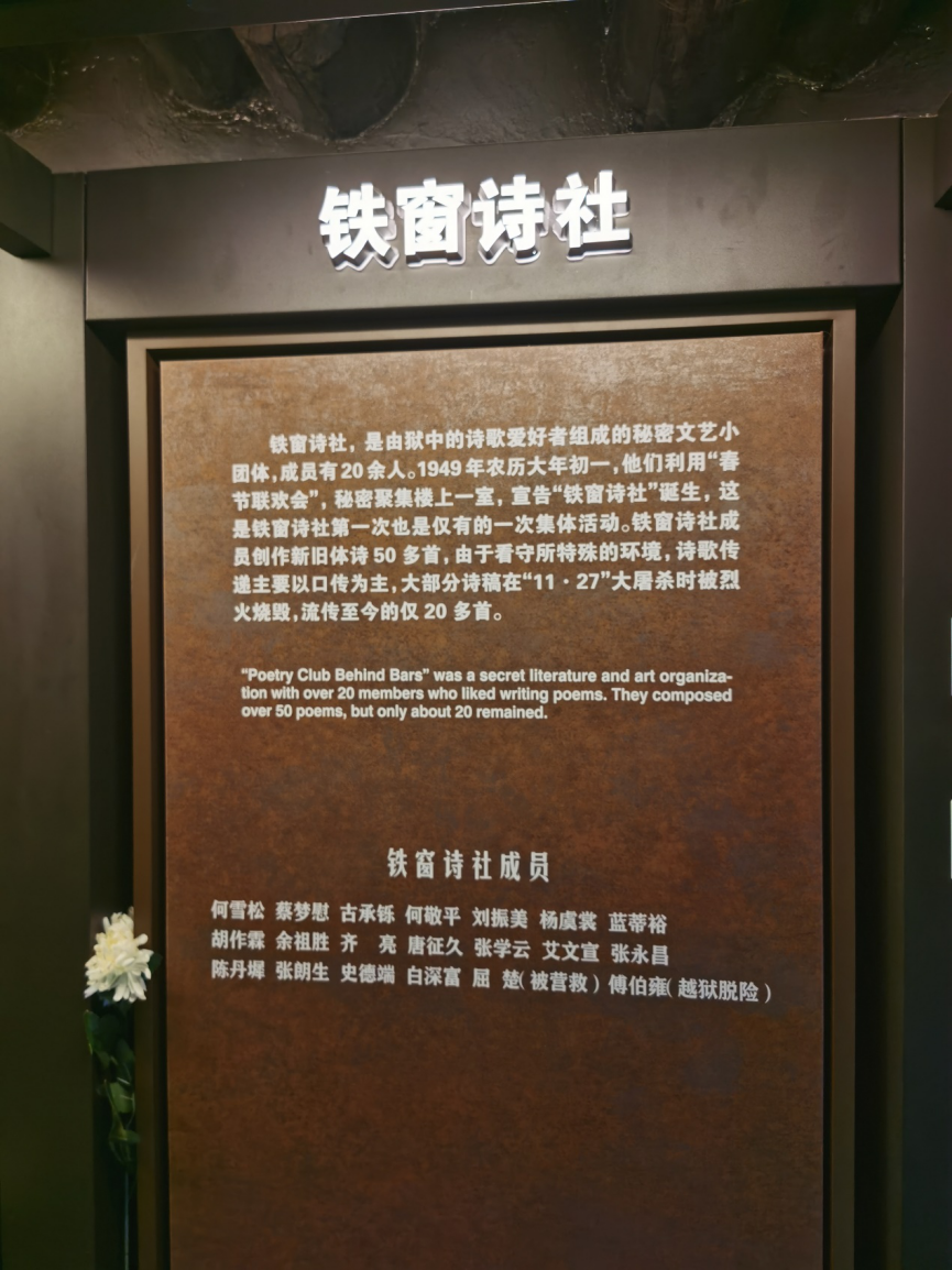 在参观过程中,队员们了解到了一大批中国共产党革命烈士受到了国民党的非人待遇,受尽了酷刑,但革命烈士不畏艰难,苦中作乐,以革命乐观主义精神去面对艰难的处境并创办了“铁窗诗社”,通过诗社表达了高涨的革命热情。