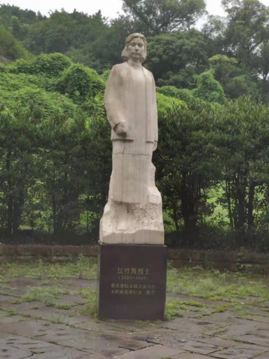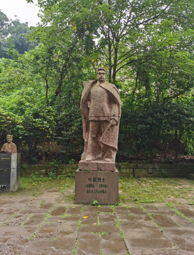(左:江竹筠烈士雕塑) (右:叶挺烈士雕塑)