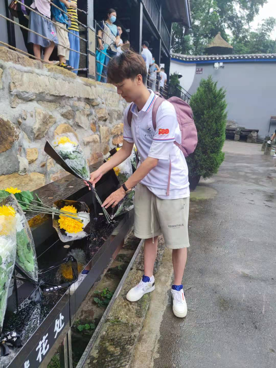 在参观渣滓洞的最后一程,队员们缅怀了以江竹筠为代表的一大批中国共产党革命烈士,在留言册中写下了团队对于革命烈士的悼念,并为革命先辈奉上鲜花。