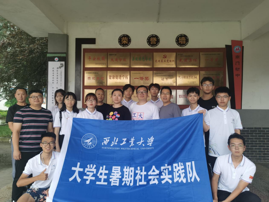 实践队所前往的南门初中创办于1958年,有比较悠久的办学历史和一定的文化底蕴。目前校舍占地30余亩,校园布局合理,层次井然,错落有致,相得益彰;校舍焕然一新,环境幽雅,书香浓郁,诗韵弥漫。先后获得开州区文明礼仪示范av解说