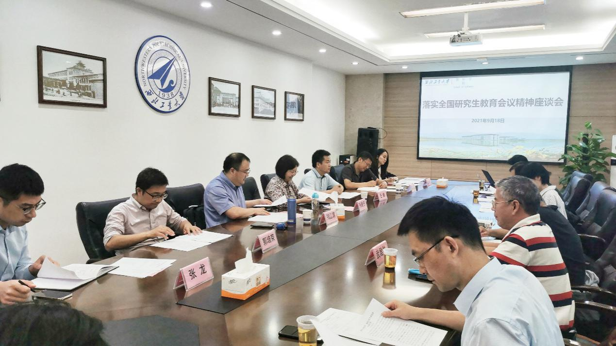 办公楼A座223会议室召开了进一步落实全国研究生教育会议精神座谈会。校长助理兼研究生院院长张艳宁,研究生院副院长王鹏、质量办公室张洁,av解说