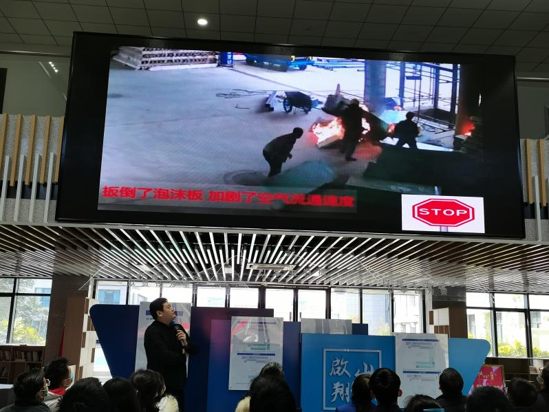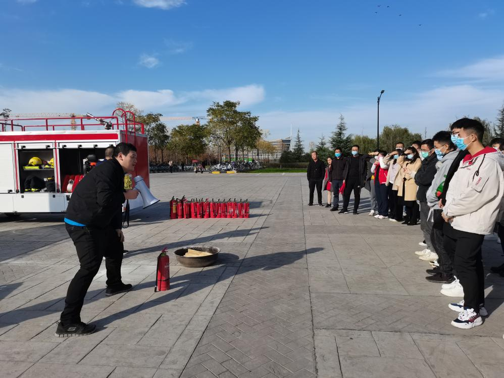 保卫处消防科许磊同志结合消防安全案例做了专题报告,并对消防疏散演练注意事项进行了说明。在消防技能现场教学环节,许磊向师生们讲解了灭火器的正确使用方法和注意事项,并安排大家分组进行了实际操作。