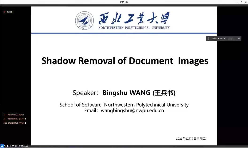 王兵书副教授作题为《文档图像阴影移除》的精彩学术讲座。在讲座内容的精彩预告下,av解说