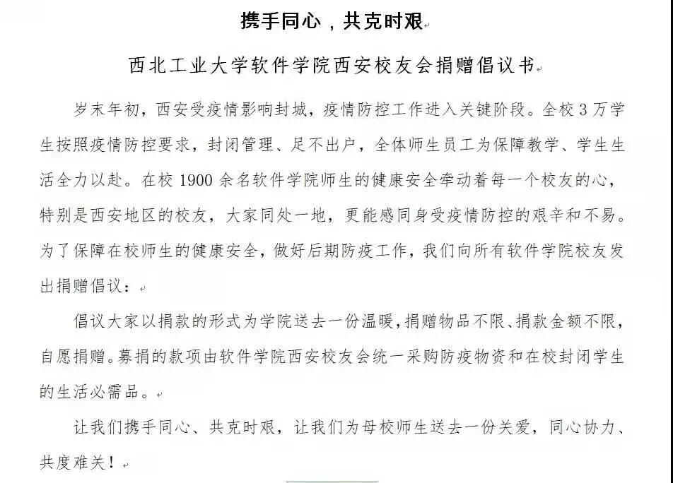 西安校友会捐赠倡议书)