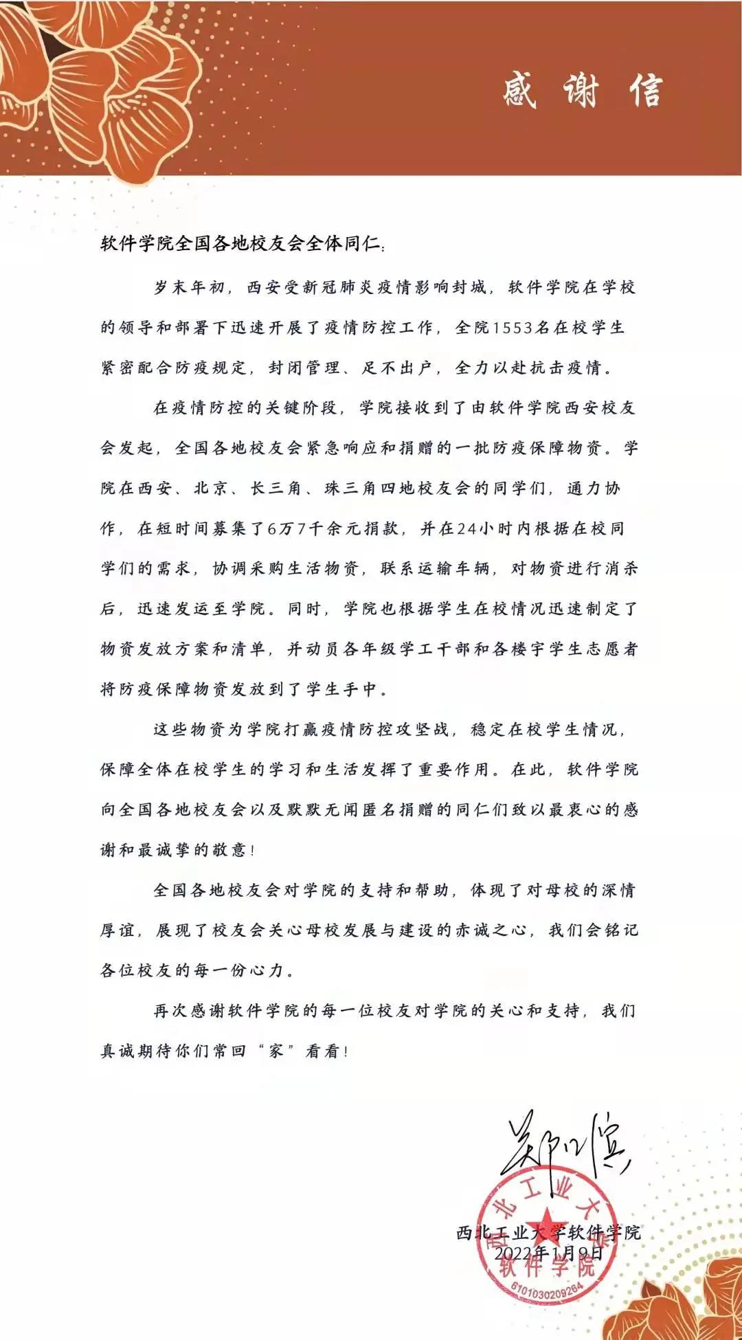 为校友们送去感谢信)