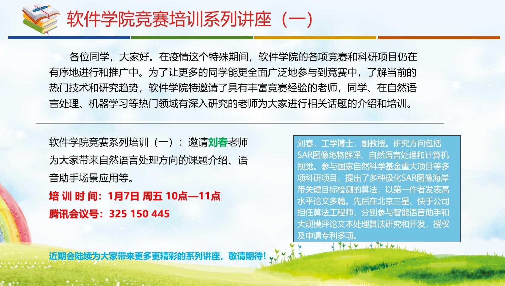 特邀请了具有丰富竞赛经验的老师,同学、在自然语言处理、机器学习等热门领域有深入研究的老师为大家进行相关话题的介绍和培训。