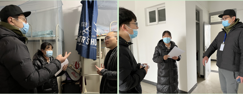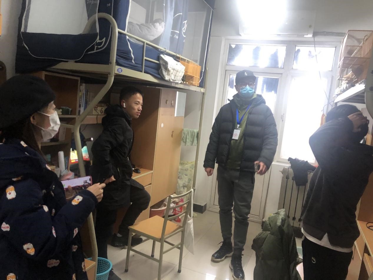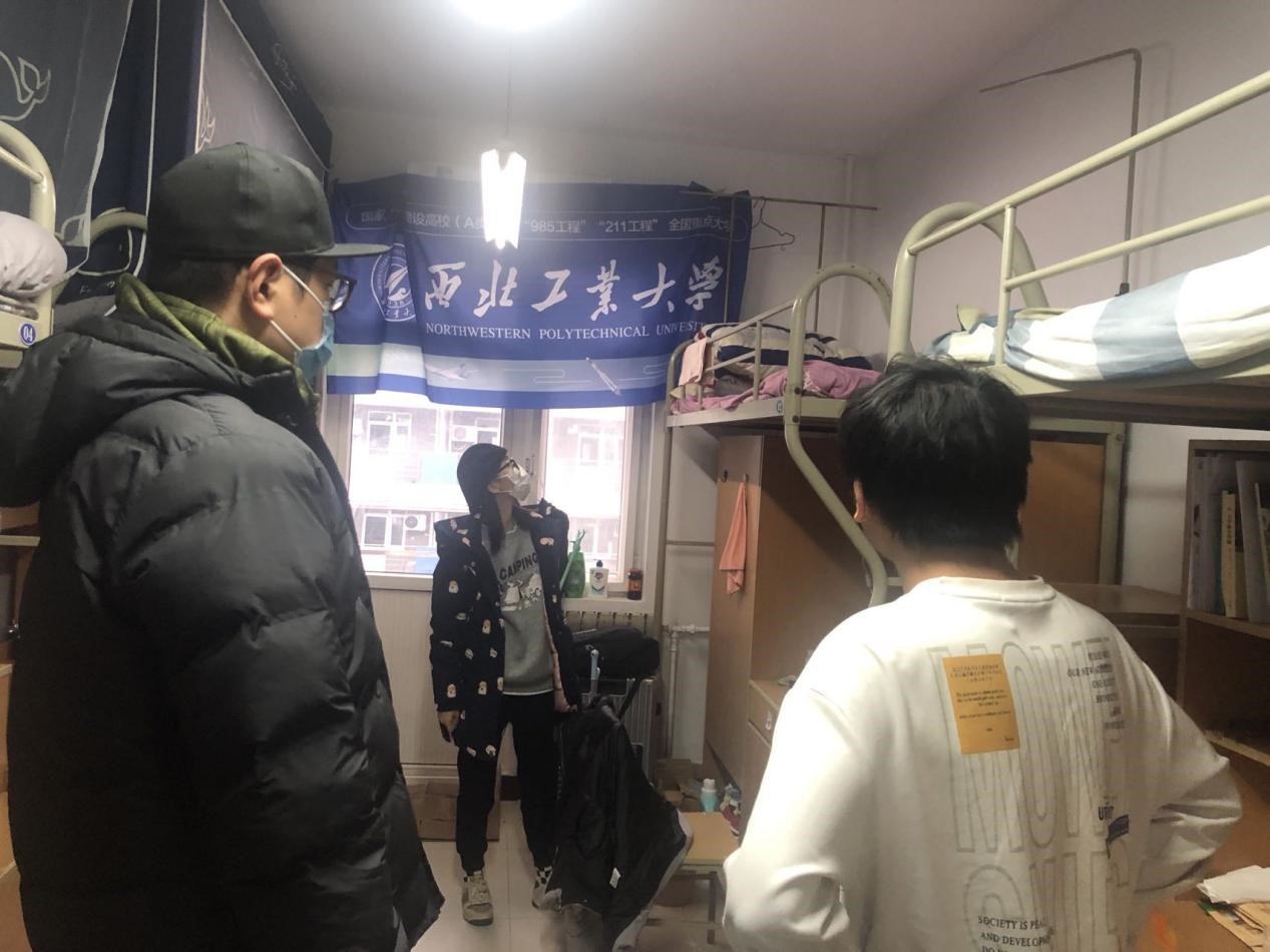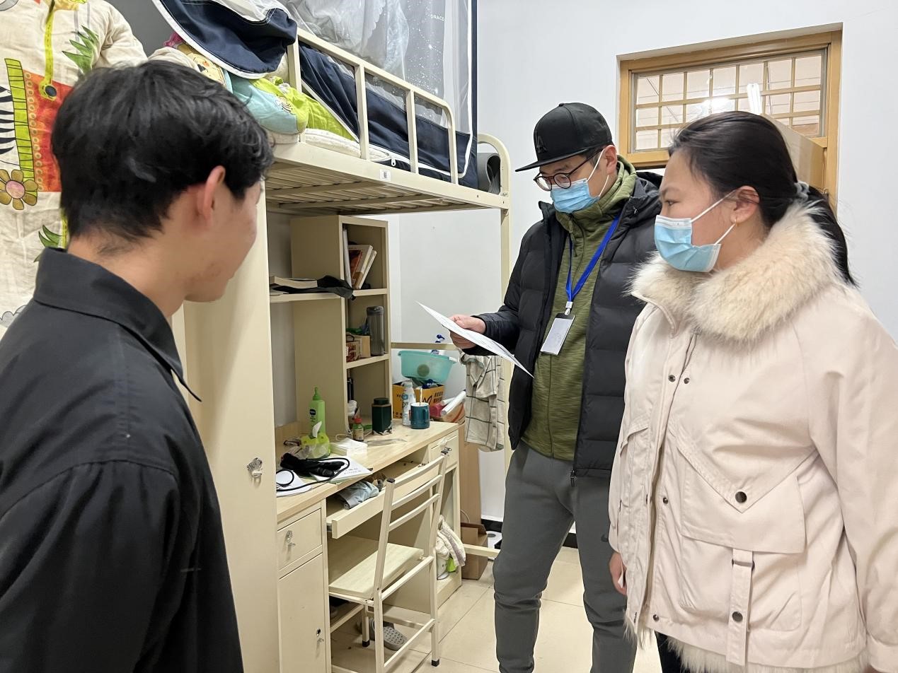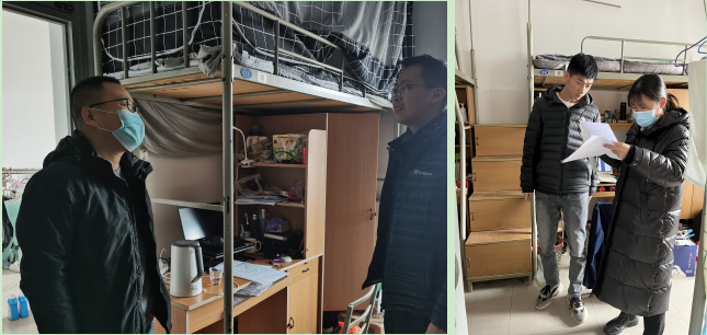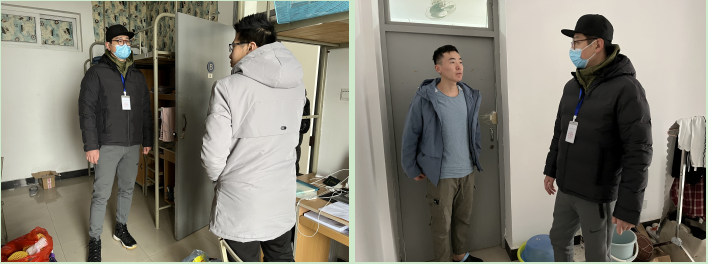 27日中午,张龙、高利鹏、茹丽媛走访了留校研究生宿舍,亲切慰问了寒假留校学生,了解同学们的学习、科研、工作及生活情况,同时强调留校学生宿舍用电安全、出行安全、运动安全等要求,最后也向每一位留校生一一送上节日的祝福。