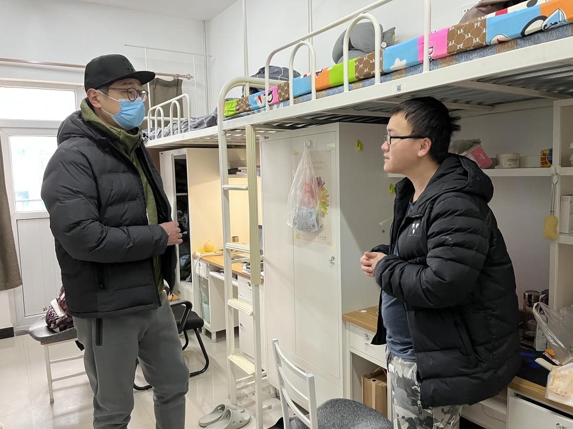 对留校学生的关怀。张龙希望大家能够努力学习,珍惜寒假宝贵的独处时间,合理安排学业计划,潜心学习;叮嘱大家要充分认识到疫情防控的重要性,注意自身安全防护,坚持运动的生活习惯;提示大家要与父母保持联系,随时反馈在校生活情况,让家人放心。