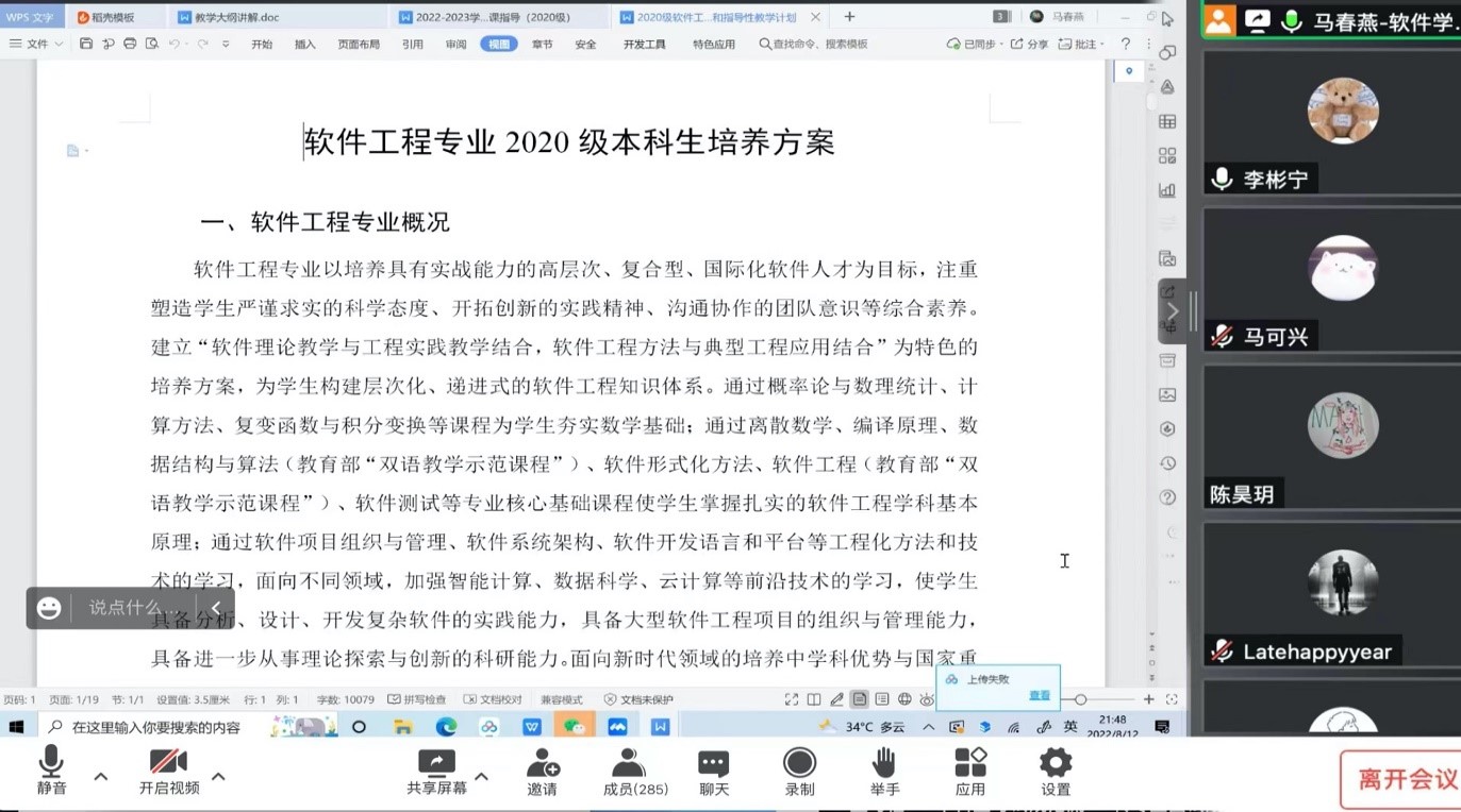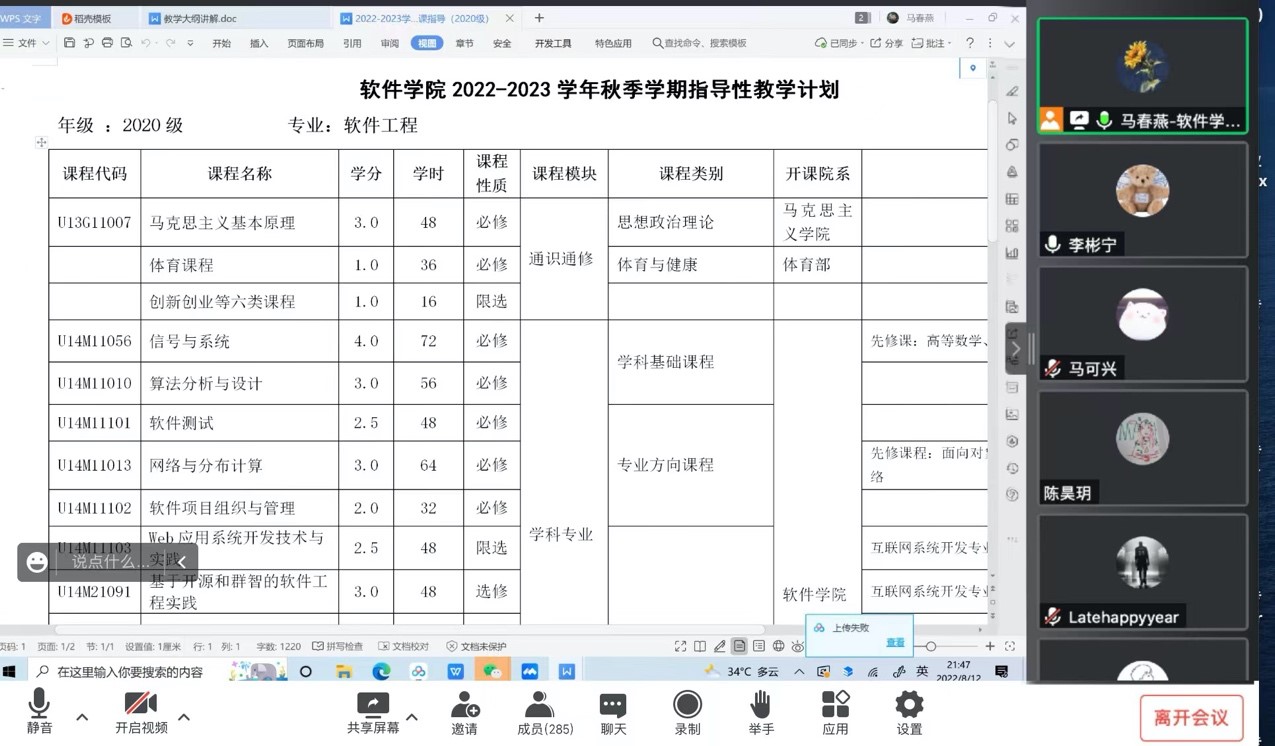 通过线上腾讯会议平台,召开本科生选课指导会,该会议由av解说