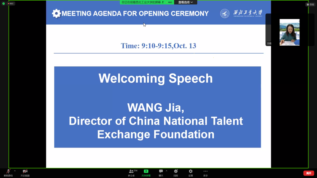 接下来,作为联合主办方的中国国际人才交流基金会理事王佳进行发言,她对参与本次国际学术月的学者与学生表示热烈欢迎,也对各位嘉宾在本次学术月的活动中支持奉献表示感谢。