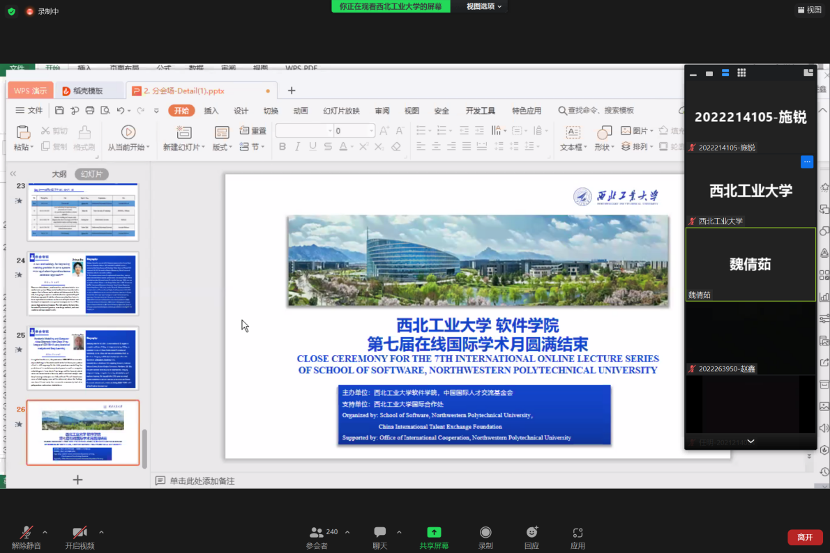 魏倩茹老师宣布本次国际学术月活动圆满结束,并表示活动的结束只是暂时的,av解说