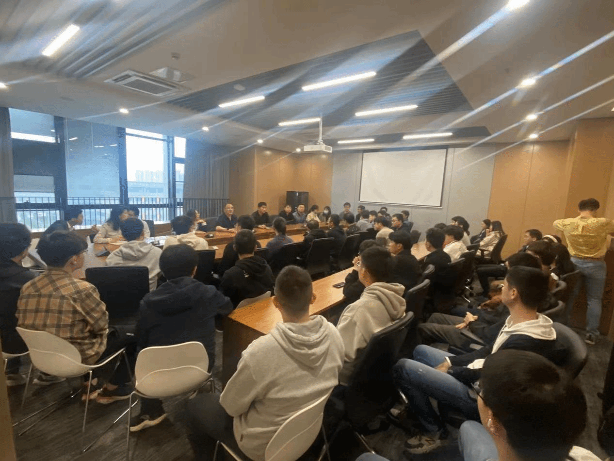 在太仓智汇港教学C615会议室举行师生座谈会,院长郑江滨、党委副书记(主持工作)李晗、副院长马春燕、办公室主任王宇英、院长助理高利鹏和罗建超以及2021级硕士研究生参加了座谈会。