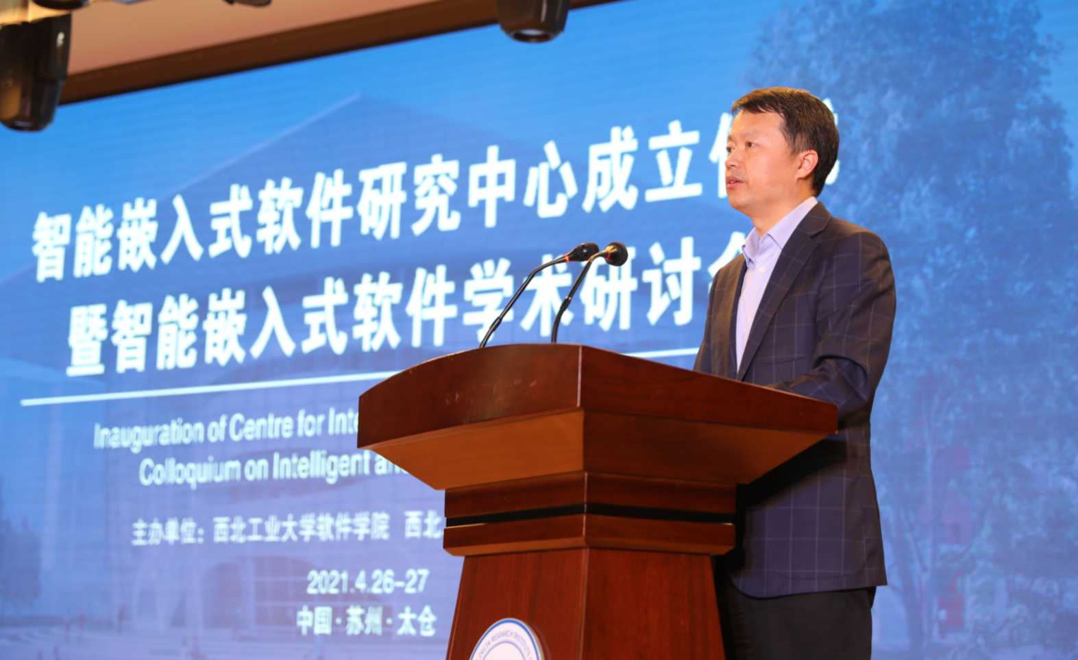 校长助理张艳宁教授和研究中心主任刘志明教授共同为智能嵌入式软件研究中心进行了揭牌。副校长张卫红教授为研究中心第一届学术委员会成员颁发了聘书。